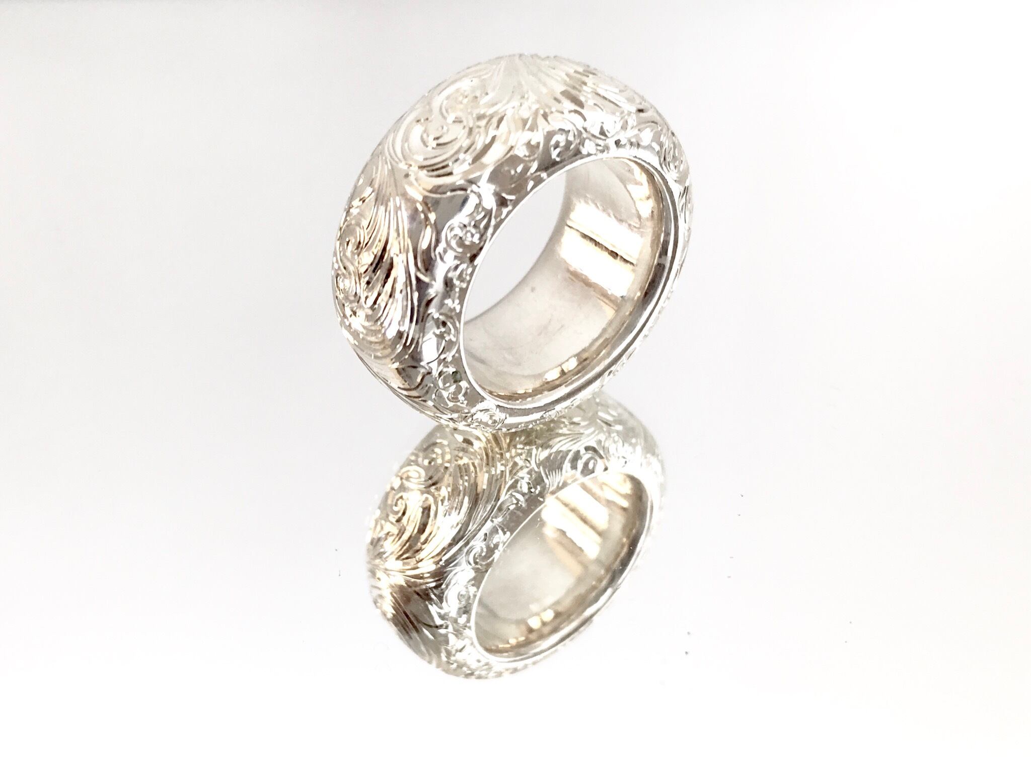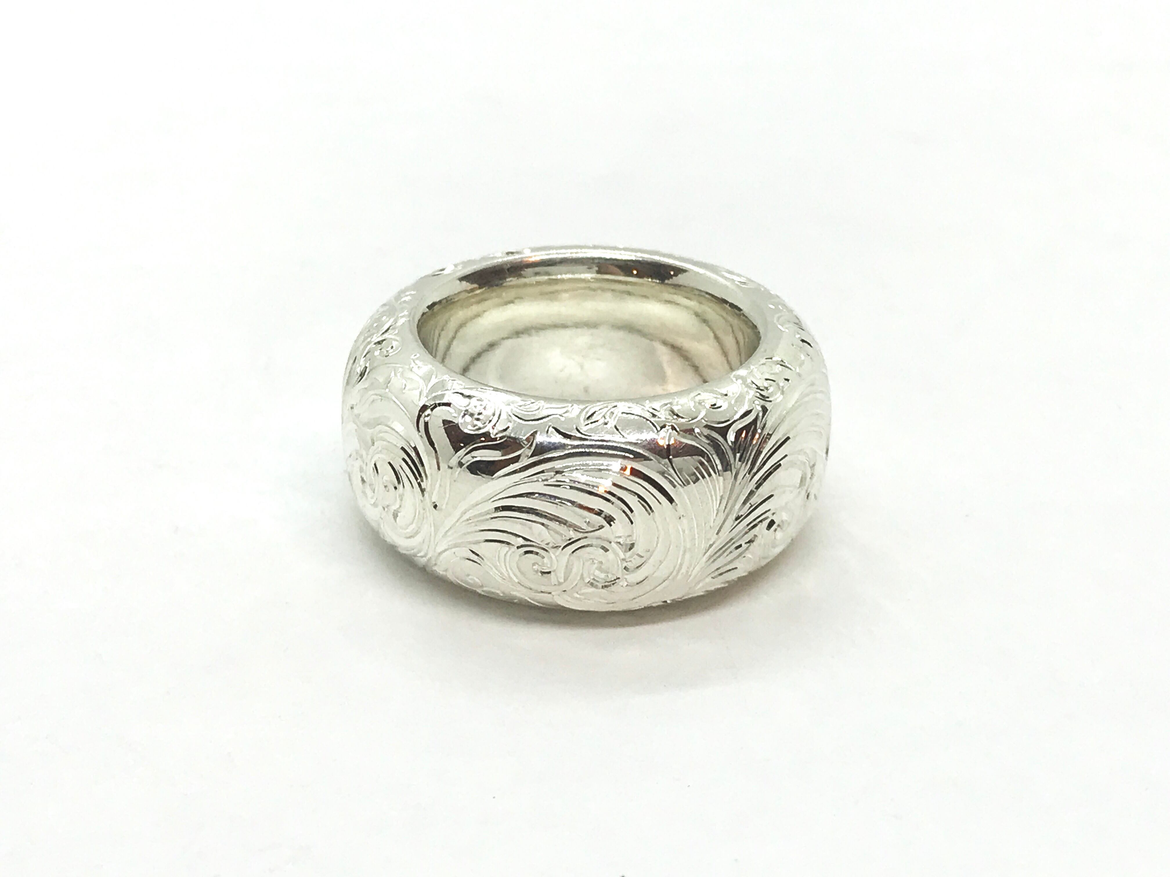 受注製作 レディス メンズ 総手彫 アラベスク 唐草 リング シルバー 無垢 指輪