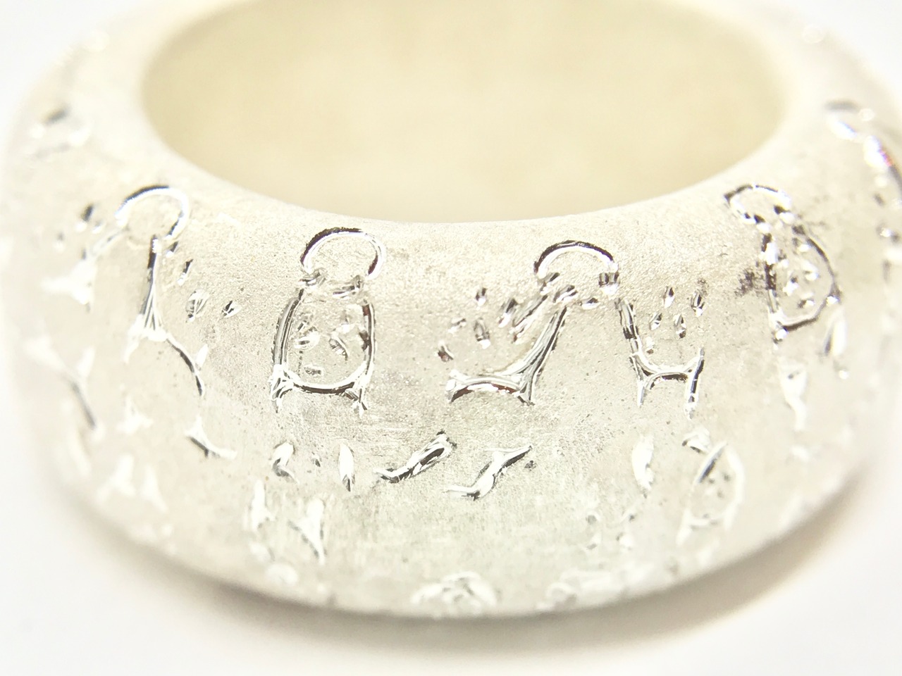 クラシックな手法で原型を製作し、ロストワックス製法によって製作した後、パンダのモノグラムを彫刻したシルバーリングです。